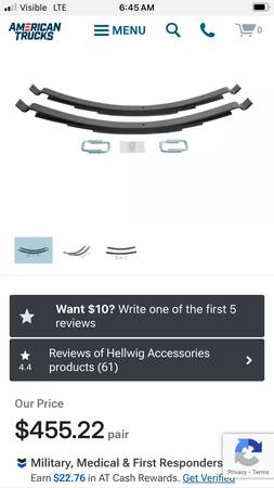 Heavy duty helper springs in great condition used for a short time then went to airbags. Half of new. Ready to bolt on everything included. $160.00 OBO Thanks